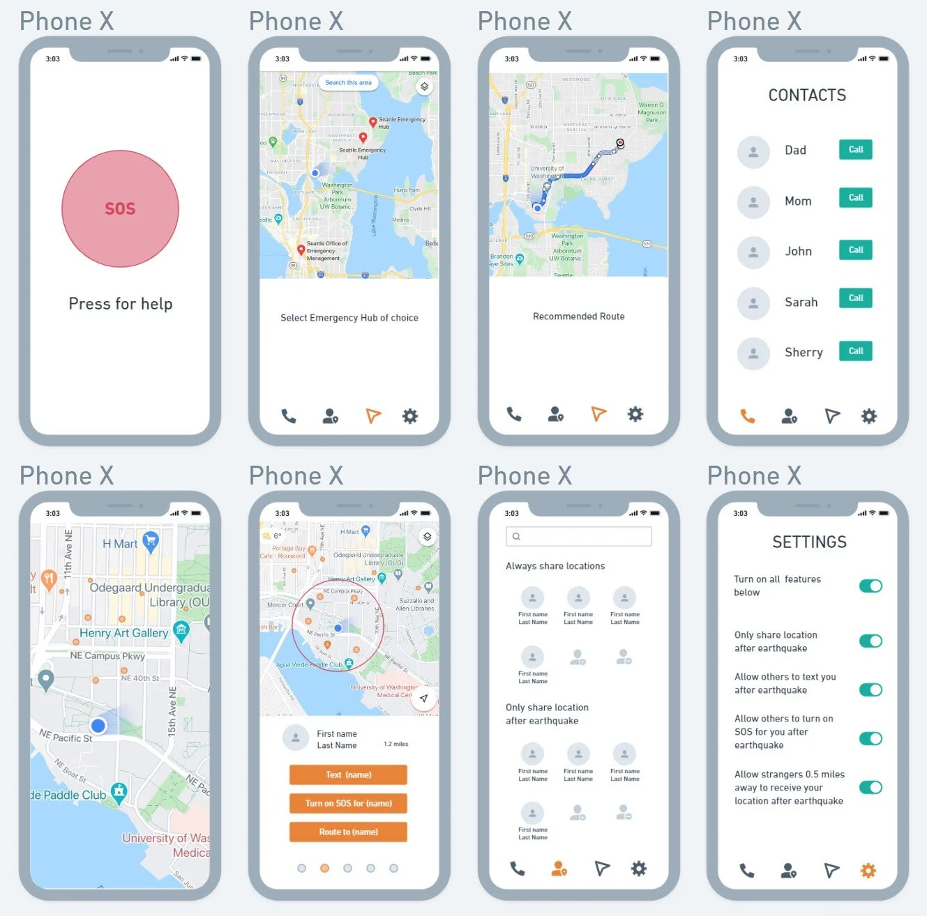 A digital earthquake kit whose main purpose is to guide earthquake survivors to Seattle area Emergency Hubs.